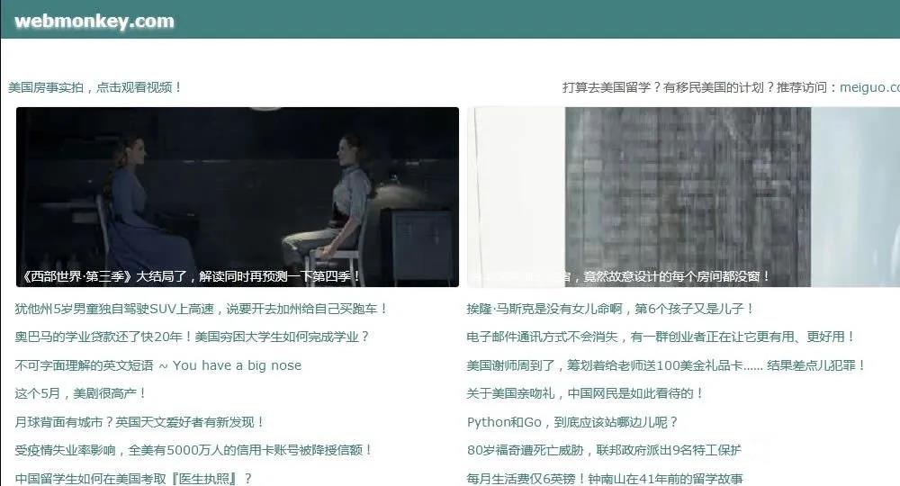 小编查询到webmonkey在1996年推出,是一个非常受欢迎的网上教程,教授人们如何在前端和后端构造网页。网站包括了构造网页的方方面面的知识,比如网上编程,数据库,多媒体和网络商店架构。内容与《连线》杂志上教授网站设计的教程相似。