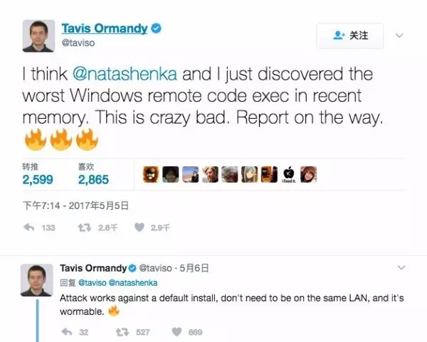 上周末,奥曼迪在推特上宣称,他和西尔万诺维奇发现了近年来最糟糕的Windows远程代码执行漏洞。