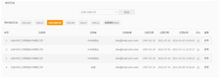 Cctv作为中国最有代表性的新闻频道,很多人都对cctv的域名颇感兴趣,通过whois查询cctv.com: