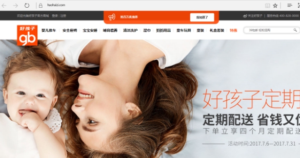 打开好孩子的官网是:haohaizi.com,好孩子的全拼,和品牌相应,通过域名:goodbaby.com,现直接跳转到了:haohaizi.com。好孩子选择的两个域名都是符合品牌形象的,在选域名上是下了功夫的,而且公司保护的域名也有很多,不管是英文域名还是中文域名,都有相关注册保护。