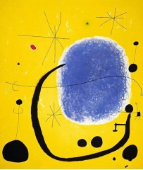 在整理胡安·米罗的《The Gold of the Azure》时,威尔利吐槽道:随便地把一些线条和形状画在黄色背景上,像一边打电话一边在纸上乱画的东西。感觉整理过后节省了一半画布,经济又实惠。