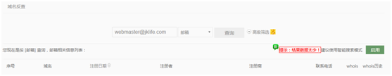 通过whois反查发现,jklife.com对应的无论是注册机构还是注册人还是对应邮箱,都不能查询到之前用过的对应品牌的域名。
