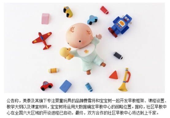 2017年以来,全球最大的玩具厂商美泰在中国市场活动频繁。7月26日再次宣布新的野心——美泰宣布和最大母婴社区宝宝树完成合资公司组建,在全中国建立上千家早教中心。