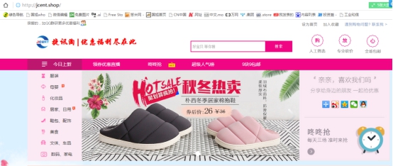 捷讯通(jcent)成立于2016年,该公司以网络信息技术和新媒体开发、推广、服务为主,致力于为个人、中小型企业、政府机构等提供网站服务、网络推广、新媒体服务、广告文案策划、资源整合共享服务为主。自成立以来,该公司广受好评,最近在其微信平台上宣布旗下的优惠券发放网站捷讯淘正式启用新域名jcent.shop。