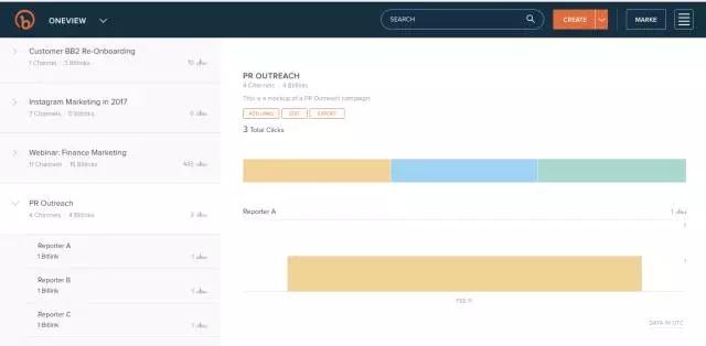 下面就是这种营销方法的效果。你会在主页OneView上看到每一个记者是如何处理你的邮件的,以及链接是如何帮助你完成外联事务的统计。