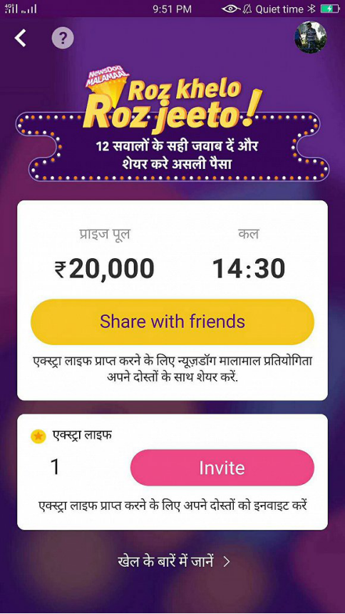 目前在印度有4000万用户,月活在1500万左右。和其他新闻聚合应用相比,Newsdog新闻实时更新速度快并提供离线阅读模式,切中了印度流量贵、网速慢的市场痛点。对Newsdog来说,直播竞答同样意味着一种新的获客方式。