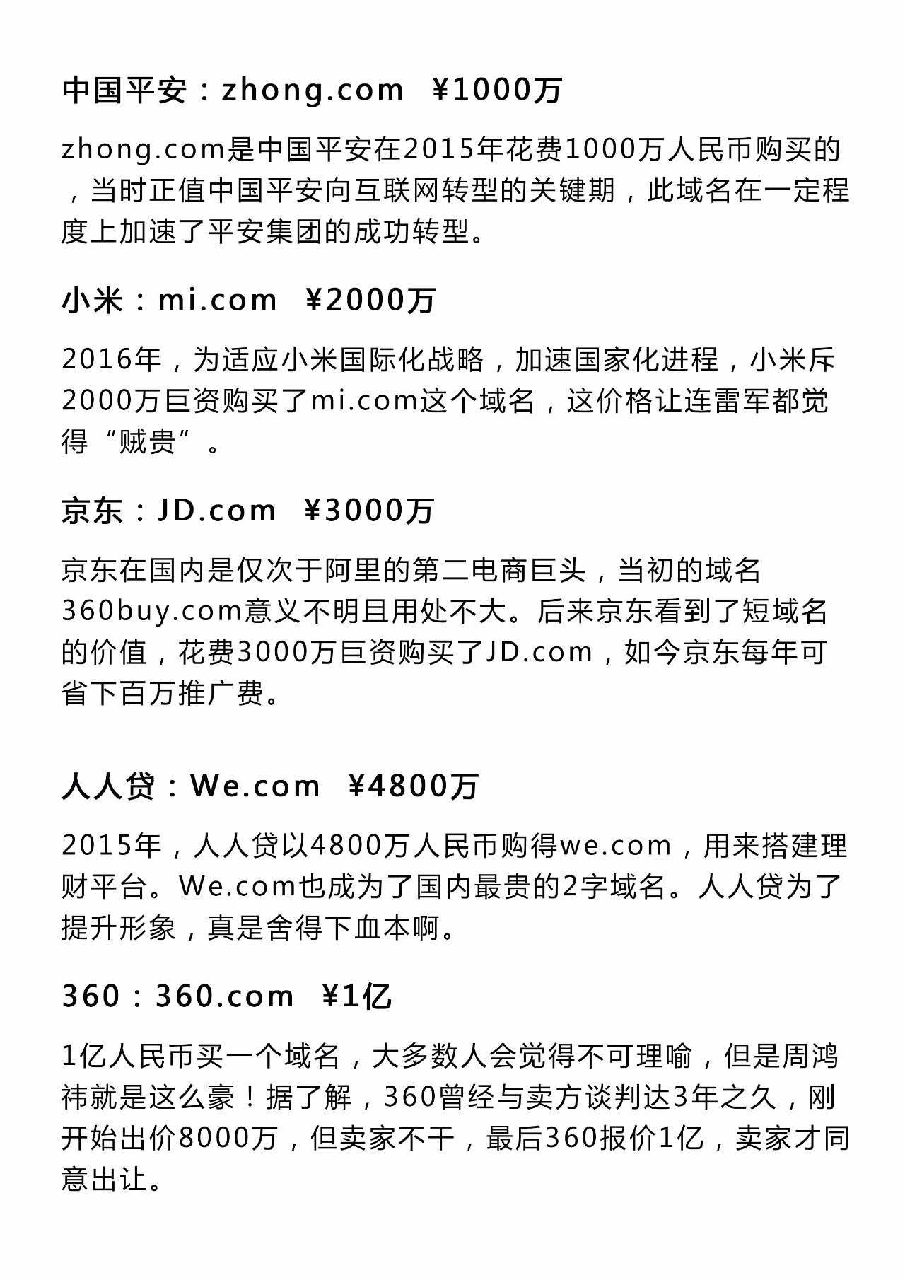 中国企业对域名也是相当重视,不少中国名企斥巨资也要拿到品牌域名,比如以下五家企业,为购域名真是不惜大出血啊!