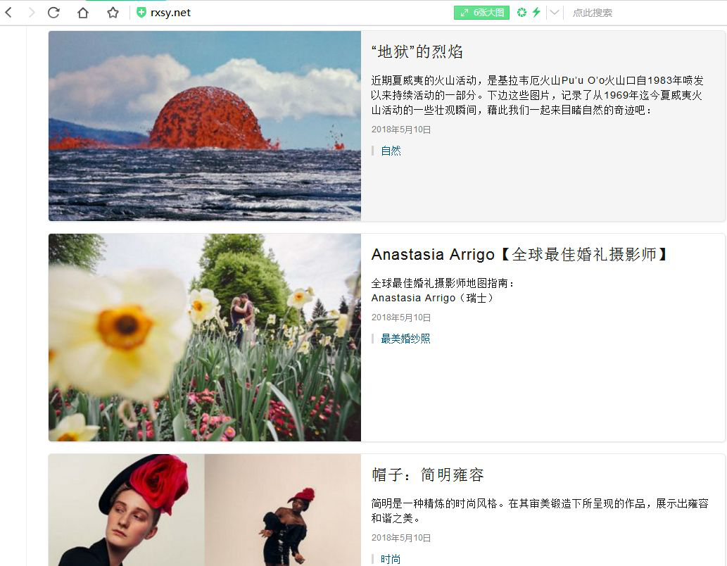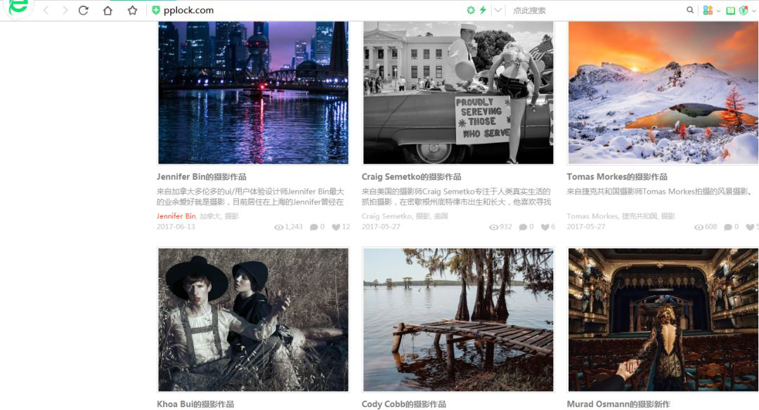 该网站主要分为三个板块,分别为摄影作品发布、摄影技术技巧与技术已经摄影设备的资讯。可以说是摄影一条龙,是摄影发烧友很好的学习网站。同时网站也欢迎摄影爱好者的投稿,将更多的好的作品展现在我们眼前。