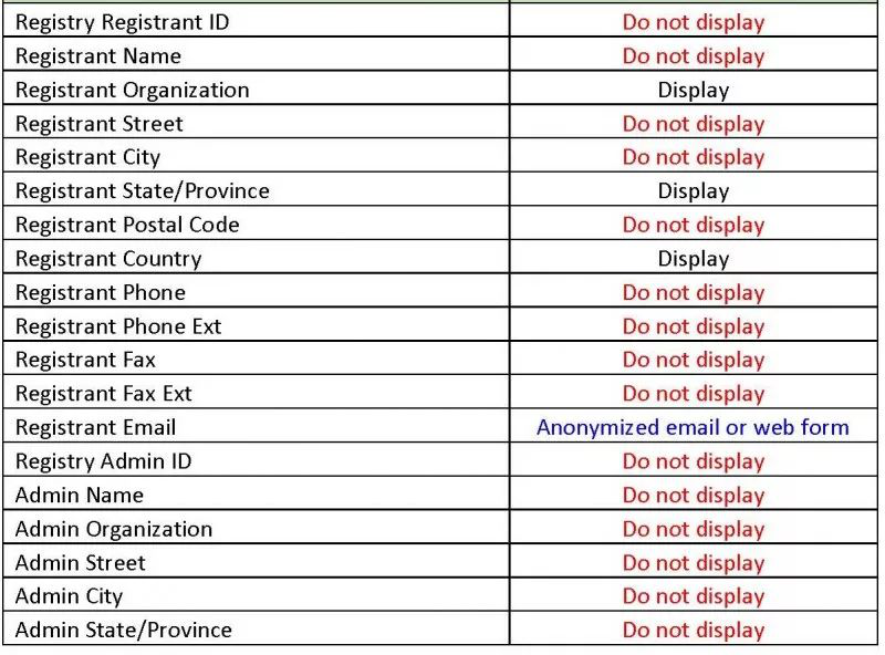 即General Data Protection Regulation,是通用数据保护法案的英文缩写,从2018年5月25日起强制执行,旨在欧盟范围内对个人数据进行保护和控制。具体到域名领域,欧盟要求欧盟范围内的注册局、注册商对域名注册数据中的注册者名称、地址、邮箱、电话,甚至管理联系人、技术联系人和缴费联系人的信息都必须隐藏起来。什么?WHOIS要shutdown了?
