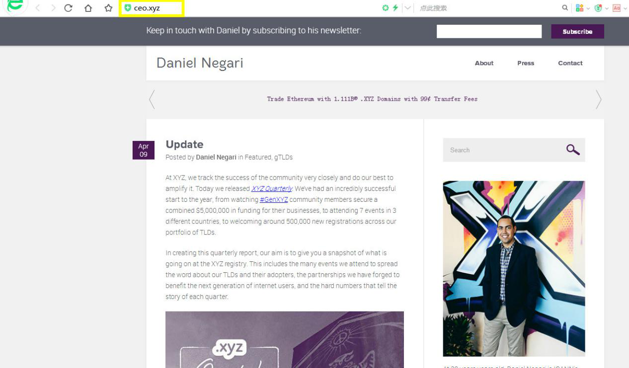 专为xyz创始人Daniel Negari打造的网站,Daniel Negari作为XYZ的创始人兼首席执行官,域名ceo.xyz完美说明其地位与身份。