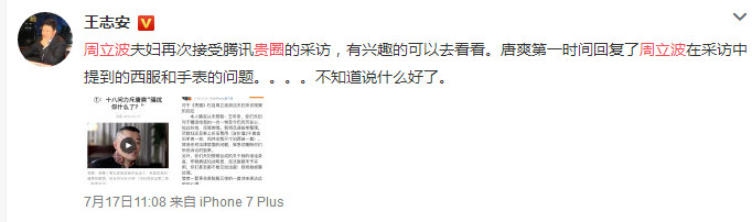 7月16日,周立波又接受了腾讯专栏《贵圈》的采访,跟之前在王志安专栏《局面》里的说法,又有所不同。有兴趣的朋友可以看看比对下。
