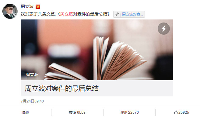 7月24日,周立波发表最后的文章,不再回应周立波事件!