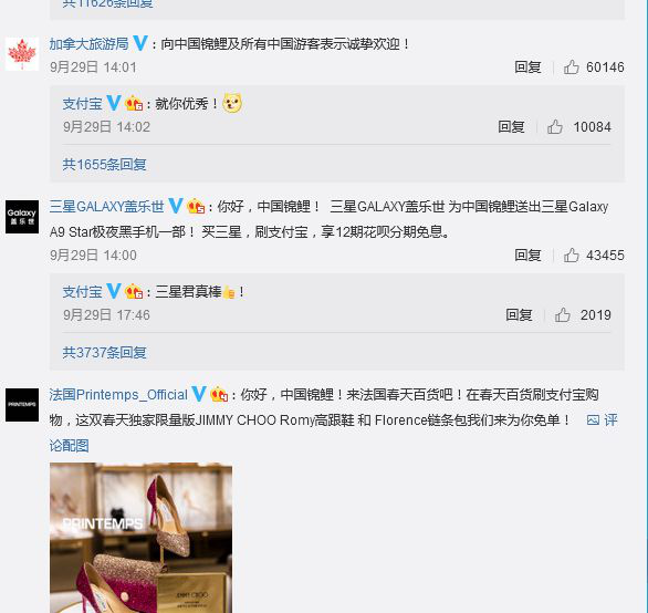 此次支付宝并没有为这次活动做什么推广,而这个微博却被被转发了300万次,带来了数十亿的浏览量,锦鲤公布后更是频频霸占热搜榜,对于这次的营销,支付宝是非常成功的。