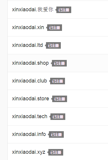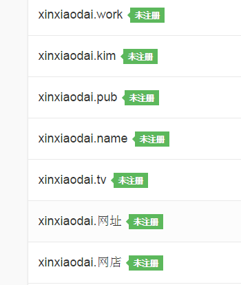 目前,与“xinxiaodai”相关后缀大部分已被注册,你也要来一个嘛?