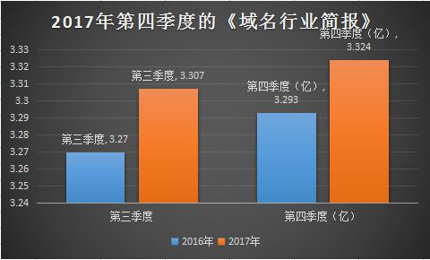 2017年第四季度,顶级域名.com和.net的保有量约为1.464亿个,较去年同期增长2.9%。截至2017年第四季度,全球顶级域名的注册总数约达3.324亿个。