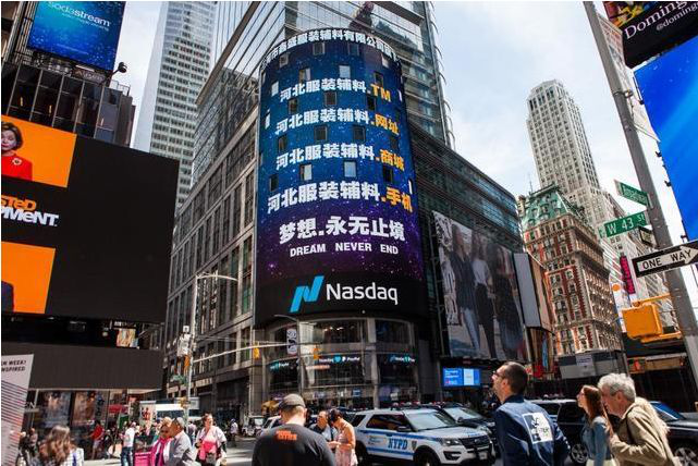 纽约时代广场的纳斯达克大屏幕是"全球焦点,世界瞩目"的LED焦点屏幕,也是"吸引全球目光"的最佳窗口之一,备受知名企业和明星大咖的青睐。登上此次大屏彰显了公司的实力,也体现了公司的品牌形象以及服务宗旨"追求完美,创造优质的服务"。在董事长卢朝儒的带领下进一步扩大了公司的实力和在行业中的影响力。同时也吸引了更多的人对本公司的关注,从而提高了外界人士对公司的信任,同时也对公司"优质高效,诚实守信,持续发展"的理念有了更深的认可。使三河市鑫盛服装辅料有限公司面向国际化更进一步。