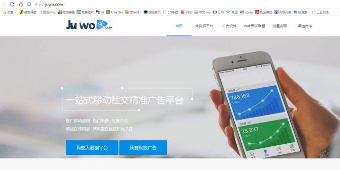 好的域名总是会经历多次的转手,这枚“juwo.com”在7月以六位数的价格再次转手,目前该域名被北京要祺科技有限公司启用,用以“聚沃”网站平台的搭建。该平台主要为其他企业提供移动社交精准投放广告的服务,为客户量身订作整个移动网络广告宣传过程,全程监测广告效果。