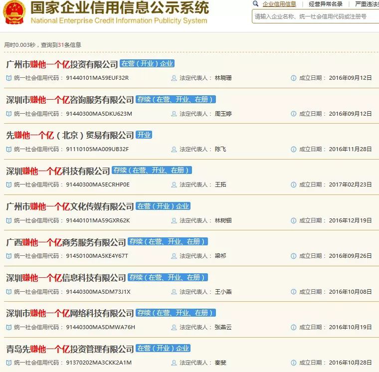 然后一堆“赚他一个亿”有限公司注册了.......