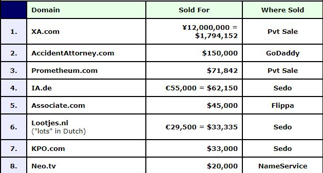 除此以外,本期榜单上的IA.de域名也比较吸睛,价格为55,000欧元。Associate.com以45000美元成交,英文单词域名,有“关联、联想、联合”等含义。以33335美元成交的Lootjes.nl在荷兰语中有“彩票”之意,价值也不错。