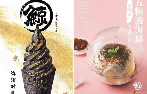 图|左为琉璃鲸五粮液冰淇淋,右为喜茶醉醉冰淇淋(来源网络)