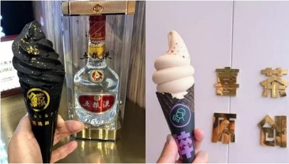 这还不够,更有商家瞄准了成人市场,做出了酒味冰淇淋。前段时间,武汉连锁网红茶饮店“琉璃鲸”推出了五粮液冰淇淋,众多市民前去尝鲜,销售火爆。