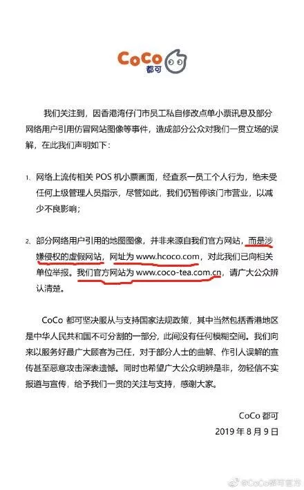 事情的起因在于一网友在购买奶茶时,发现上面写有“香港人加油”字样,在香港如今的敏感时期,虽然发布这样的话很容易让人疑惑,但也不能被认定为“港du”,而最终演变成不可控制地步,竟是因为域名。