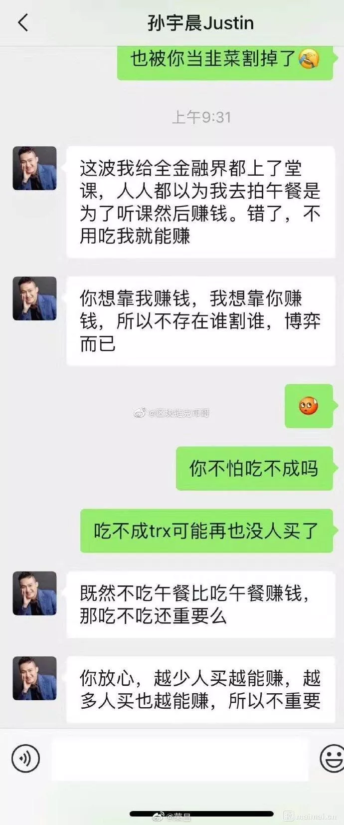 但从今年开始,孙宇晨通过“蹭热点”开始越发备受关注,其中最火的事件就是以破纪录的456.7888万美元(约合人民币3153万元)的竞拍价格,拍下第20届巴菲特慈善午餐,最后放了巴菲特鸽子。并称给巴老“上上课”