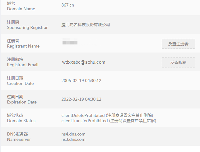 同样也是数字域名,“867.cn”也收获了近8万的高价完成结拍。据在聚查网的查询,该域名注册于2006年2月,距今已有14年的历史。作为一枚三数字域名,字符简短易记,常被用于游戏类、音乐类等网站平台的搭建。