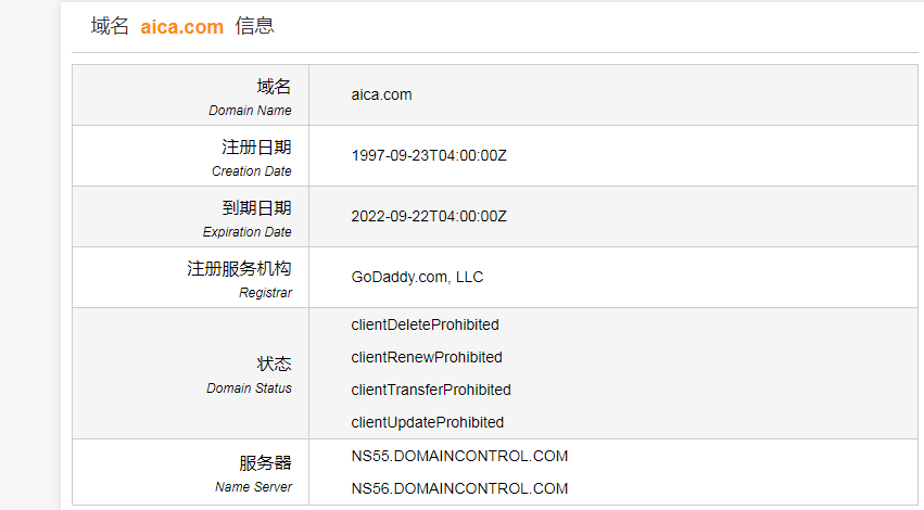 域名aica.com以23,550美元成交,约合人民币16万元。该域名注册于1997年9月,主体仅有四个字符,外形短小精湛,对应不少英文缩写词,比如“国际艺术批评家委员会”和“粘结材料”等。除此以外,aica.com还对应日本终端Aica爱克工业,其官网启用域名aica.co.jp。