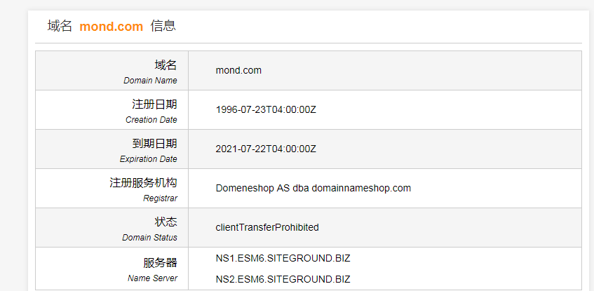 域名mond.com以16,300欧元成交