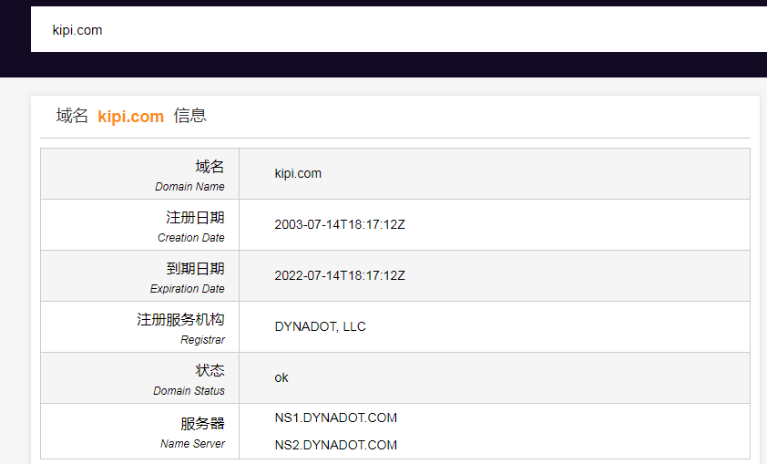 域名Kipi.com以$11,100美元的价格售出,折合人民币77667元。该域名注册于2003年7月,到现在刚好17年时间。