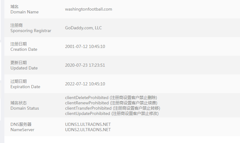 至于新域名washingtonFootball.com是华盛顿红皮通过Godaddy经纪人从域名前持有人Cal Spears手中收购的,交易价为10,000美元,约合人民币7万元。