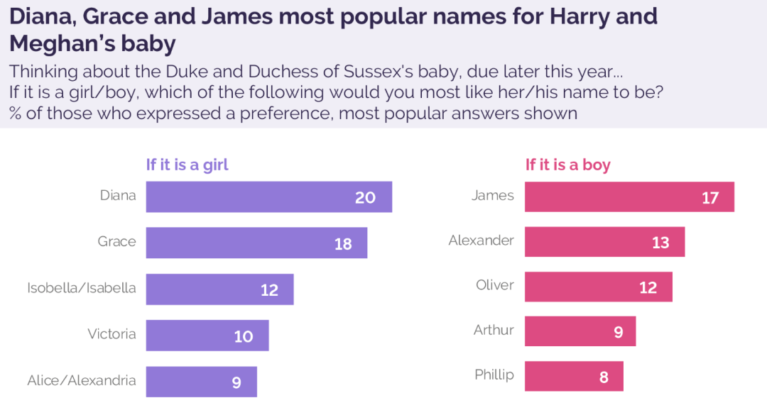 据外媒调查结果显示,如果是男孩的话,James呼声最高;如果是女孩的话,则是Diana呼声最高。