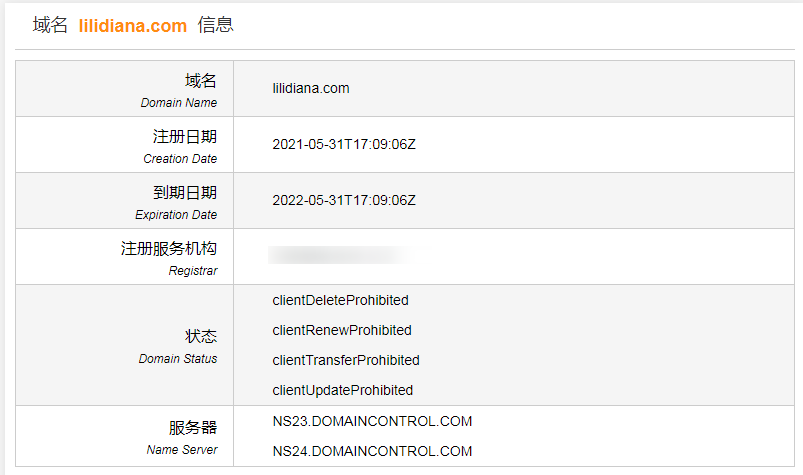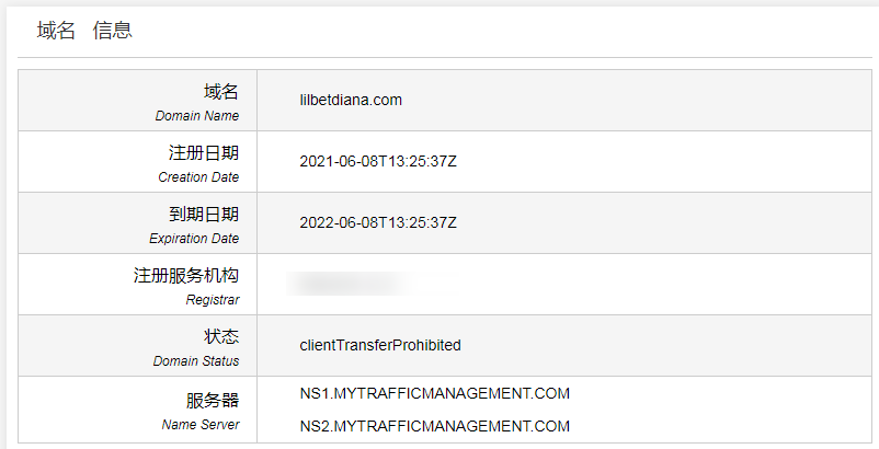 其中,购买的域名包括与小女儿名字对应的LilbetDiana.com和LiliDiana.com。通过whois可知,LilbetDiana.com注册于6月8日,而LiliDiana.com注册于5月31日,均在小女儿出生前注册的。